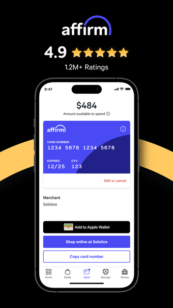 확인: 지금 구매하고 시간을 늘려 지불하는 것은 사용자가 스트레스 없이 쇼핑하고 유연한 지불로 시간을 늘릴 수 있는 금융 앱입니다. Affirm 카드를 통해 특정 고객은 편리하게 앱의 기능에 액세스할 수 있습니다. 사용자는 거의 모든 상점에서 시간을 늘리고 연이율이 0%인 독점 거래를 누릴 수 있으며, 계정을 관리하고 지불을 하며, 최소한의 금액이나 수수료 없이 고수익 Affirm Money 계정을 개설할 수 있습니다.